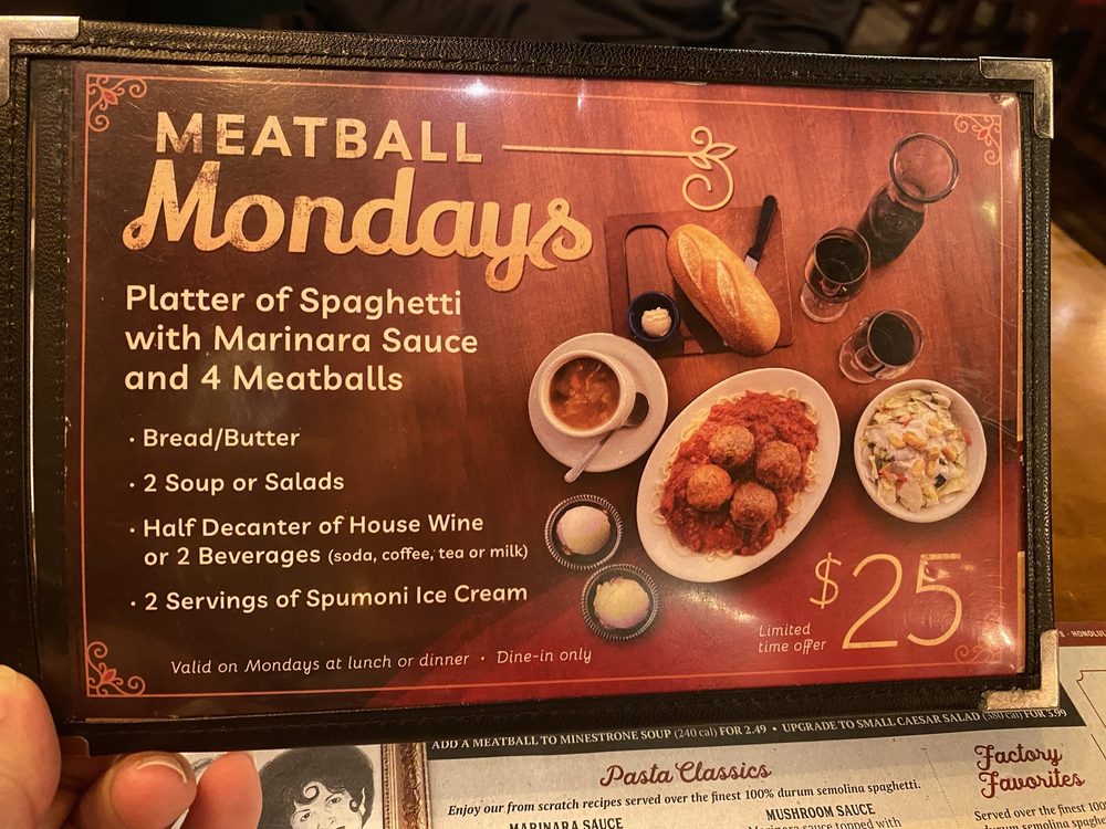 Sicilian meatballs, Italian sausage and spaghetti with Rich Meat Sauce.